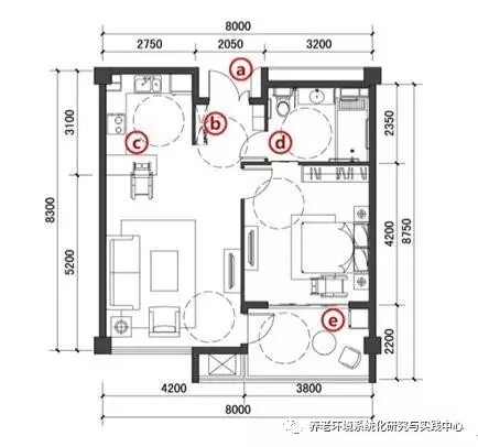 从此户型设计可以看到,老年公寓的居住空间设计明显区别于护理机构或普通住宅,设计的关键是对老年人生活起居本质需求和行为特征的分析。