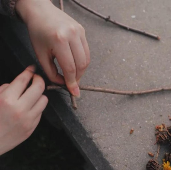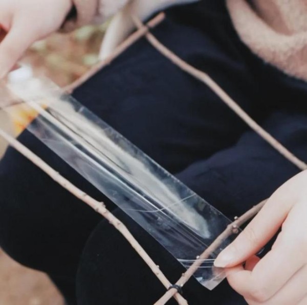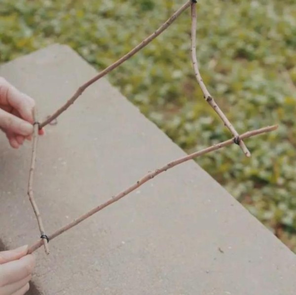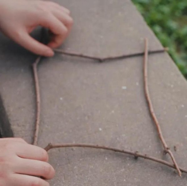 第二步:将4根树枝剪至合适的长度,摆出一个方形。