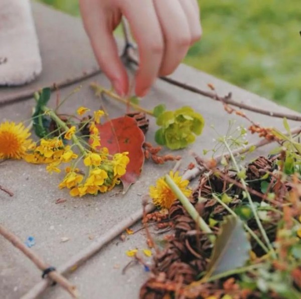 第一步:收集合适的树枝、花草。