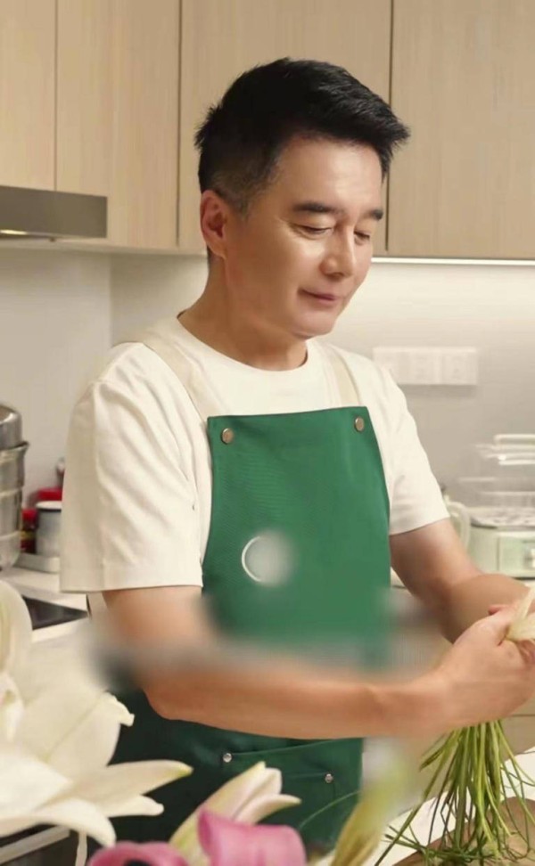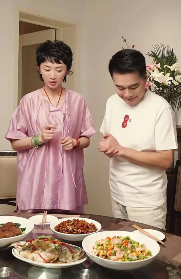 而他的四婚妻子张澍,恰好是这种温暖画面的另一道光。张澍身着粉色真丝上衣,短发微卷,佩戴精致手镯,贵气十足。她不下厨房,却用另一种方式参与生活——安静地插花,为家里营造情调。两人一动一静,构成了生活中最温柔的平衡。