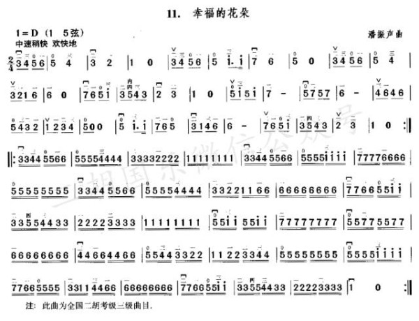 二胡国乐的初中级琴友可以结合练习下面的快弓练习曲《幸福的花朵》在二胡考级定级为三级练习曲。