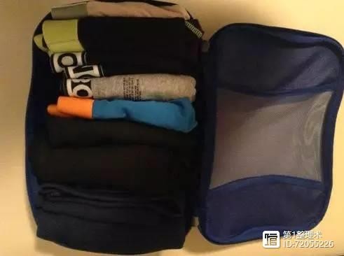 接下来就是干净的内裤和袜子,在这里我将所有的内裤竖起来折叠在一个双层尼龙收纳袋。