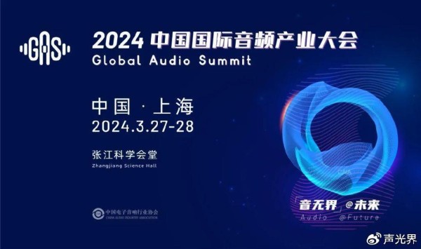 2024中国国际音频产业大会(GAS)将于2024年3.27 - 28日在上海张江科学会堂举办。大会将以“音无界,@未来(Audio, @Future)”为主题。大会由中国电子音响行业协会、上海市浦东新区先进音视频技术协会共同主办,上海国展展览中心有限公司承办。