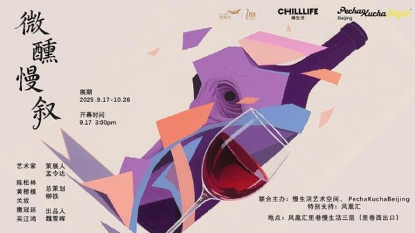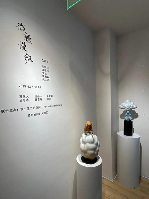 慢生活艺术空间于2025 年 9月17日至10 月 26日举办群展“微醺慢叙”展出陈松林、黄楷模、关放、撒冠廷、吴江鸿五位艺术家的作品,展览由孟令达担任策展人,柳铁担任总策划、魏雪晖担任出品人。由慢生活空间、PechaKuchaBeijing联合主办、北京凤凰汇特别支持。