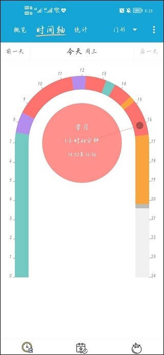 2、通过时间轴来来了解自己在特定时间段的时间使用情况!