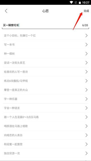5、点击左上角的添加,设置自己的心愿,点击完成;