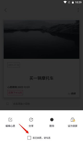 3、可以看到一个完愿的选项勾选,如果完愿就可以将其勾选上;