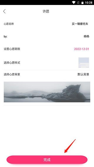 6、然后还可以设置心愿期限、样式、背景,点击完后;