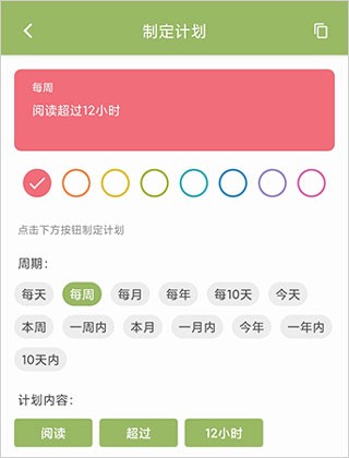 3、然后就可以制定自己的计划了,选择计划颜色和周期,然后就制定完成了。