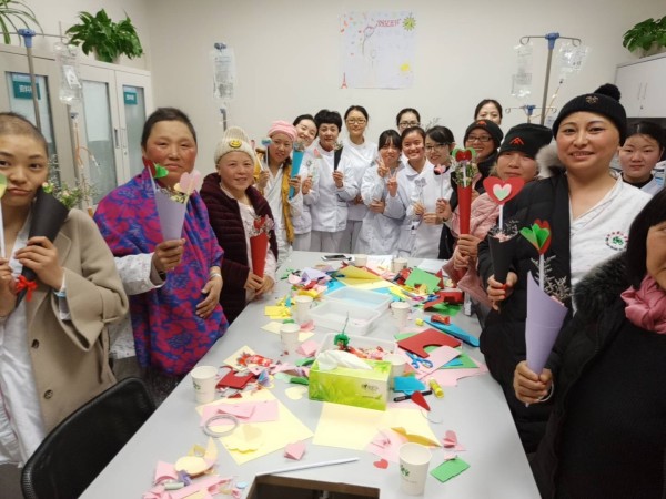 2019年3月8日上午,经过妇科肿瘤放化疗科护士长何亚林、副护士长田亚林前期精心策划,由带教老师杜娟和实习同学陈希如主持,进修护士、实习护生组织8位化疗患者在12楼办公室进行了我科艺术治疗活动——“3.8女王节,“化”身女王”,本期艺术治疗以剪纸制作许愿棒,表达对自己或家人祝福的形式开展。