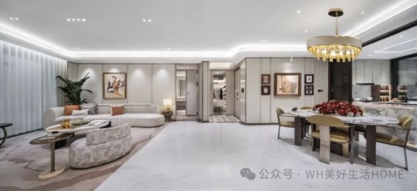 动线规划独具匠心,采用"三进式"空间序列:第一进为玄关和客厅组成的礼仪区;第二进为餐厨和家庭厅组成的家庭生活区;第三进为卧室私密区。这种布局既保证了公共区域的开放性,又确保了私密空间的安静与独立。