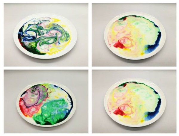 需要准备的物品就是牛奶、颜料、口径较大的碗,这个游戏也非常简单,在碗中倒入牛奶,然后将颜料滴在牛奶上,用棉签触碰颜料就可以改变颜料的形状,完成作画。