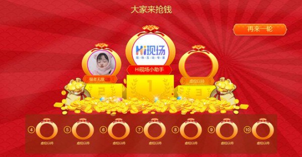 微信疯狂数钱游戏是年会现场常用的大屏互动游戏,寓意来年财源滚滚。非常适合年会场景,更适合现场互动的要求。用户可以在手机上看到规定时间内谁数钱最多,这样排名就可以实时显示在大屏幕上。最后可以根据数到的钱数来发奖。如果老板任性,土豪们能出多少钱就出多少。