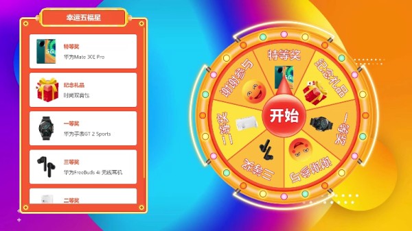 参会者点击手机端中心按钮,大转盘就会加速转动。大屏端同步的转盘抽奖效果,实现台上大屏端和台下手机端的完美串联,游戏过程更透明、更刺激,营造现场的火热感。同时可以作为线下吸引人群参加活动的利器:通过大转盘抽奖,吸引人群关注活动。同时支持签到送好礼,趣味送福利。