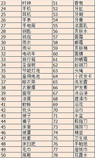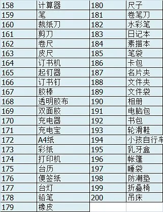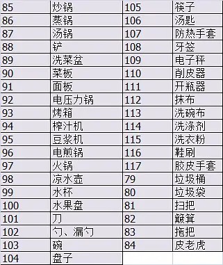 200种居家物品清单