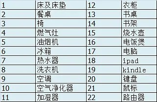 家居物品清单