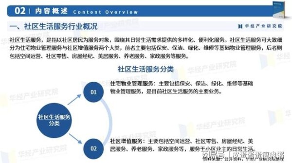 社区生活服务,是指以社区居民为服务对象,围绕其日常生活需求提供的多样化、便利化服务。社区生活服务可大致细分为住宅物业管理服务与社区增值服务两个大类,前者主要包括保安、保洁、绿化、维修等基础物业管理服务,后者则包括空间运营、社区零售、房屋经纪、美居服务、养老服务、家政服务等服务。