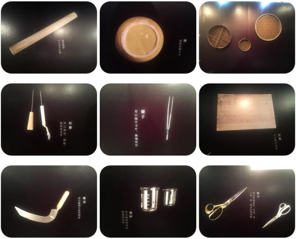 高倍放大镜、弯刀、喷壶、毛笔、起子、镊子、尺子、剪刀、铅笔、木槌、针锥、刷子、钉板、搅浆糊棒、真丝线……真是五花八门!每一种工具在整个修复过程中都充分发挥了它的作用。