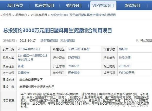下面呢小编带大家看一下招标网一条总总投资约3000万元废旧塑料再生资源综合利用项目!