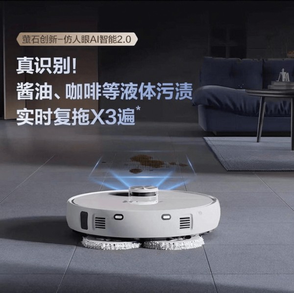萤石创新的扫拖一体机将清洁的智能化推向了新高度,搭载LDS&视觉导航技术,实现精准规划清扫路径。这款产品即可电控水箱,同时具备上下水功能,让家庭清洁更加高效便捷。通过先进的董石创新一仿人眼A/智能2.0技术,它能够智能识别液体污渍,比如酱油和咖啡,进行实时复拖,有效保障大家居住环境的整洁与健康。