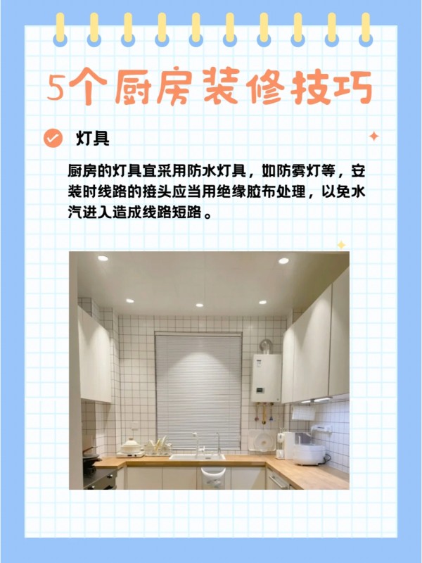 对于很多正在装修的业主来说,觉得厨房装修是个小问题,只要选好了橱柜就万事大吉了。实际住进去才发现,很多细节问题会非常影响生活幸福感 - 1️⃣厨房瓷砖 墙面瓷砖的选择应考虑室内光线的照射度,太暗或者太亮的空间应采用哑光且色彩淡雅的瓷砖,避免视觉污染,造成视觉疲劳。 除了色彩之外,厨房瓷砖地面容易有油污,应当选择具有防滑性的地砖,避免滑倒 - 2️⃣厨房灯具 厨房的灯具宜采用防水灯具,如防雾灯等,安装时线路的接头应当用绝缘胶布处理,以免水汽进入造成线路短路 - 3️⃣慎选木制品 在厨房使用大量的木制品时,应注意厨房的通风与换风系统的完善,避免水汽长时间停留在地板与墙面上,使木制品腐烂发霉,影响使用寿命 - 4️⃣地漏 厨房安装地漏是非常有必要的,厨房水汽、油烟较多,水汽浓度较高,而且经常需要清洗。如果没有地漏,清洁地面时需要更多的水和清洁药剂,比较麻烦。有了地漏就可以直接将水和污渍排到地漏中,方便快捷 - 5️⃣厨房窗帘 厨房的窗帘应该选择百叶窗,可以考虑铝合金烤漆镀膜的,尽量不用布艺窗帘,避免在沾染油污后不易清洁的问题 - 厨房装修是装修中的重点,更是花费比较多的难点,动工之前一定要多研究多实践,这样就能避免很多麻烦和返工!关注我分享更多装修知识~