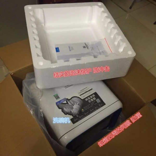 首先感谢美的公司提供M3-T免安装洗碗机评测机会!申请通过两天就收到了快递,物流发货速度很快。外箱包装采用五层高强度瓦楞纸,里面上下用专属硬泡沫保护,纸箱与产品四周预留了十公分的间隙,种种防护确保产品在运输过程中不受压伤,划伤。物流和包装都很到位!