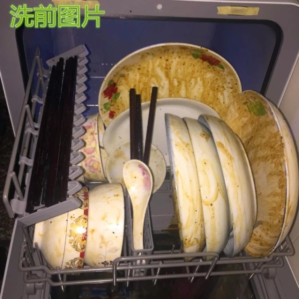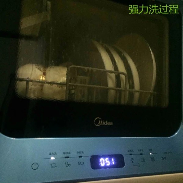 结束之后,拿出盘碗在灯光下仔细端详,洁净如新,出乎所料,仅仅5升水就能洗干净,5升什么概念,手洗的话就是第一遍水而已。美的M3-T免安装洗碗机的强力洗去重污能力过关。