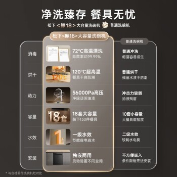 三层碗篮:松下NP-D88K1JD洗碗机采用三层碗篮设计,可以容纳更多餐具,满足家庭使用需求。 18套大容量:这款洗碗机拥有18套大容量,可以一次性洗净更多餐具,节省洗碗时间。 高温烘干:采用高温烘干技术,能够彻底烘干餐具,防止细菌滋生。 56000帕变频洗:56000帕的高压水流,能够彻底冲洗餐具,达到深层洁净的效果。 一级水效:一级水效设计,节能环保,降低家庭用水成本。 除菌净存一体:高温消毒和喷淋式洗涤相结合,确保餐具的卫生安全。 独嵌两用:既可独立使用,也可嵌入式安装,满足不同家庭需求。 120℃立体热浪烘干:120℃的高温立体热浪烘干,彻底烘干餐具,防止细菌滋生。 优缺点分析