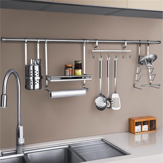 如果厨房不足够大可以选择挂式置物架。最好选用不锈钢置物架。在安装时安装位置一定要选择方便合理的位置。可以根据不同的类别安装,列如沥水架可以安装在洗碗槽的旁边,刀具架可以安装在灶台的角落,调料置物架可以安装在离我们炒菜比较近的地方等等。
