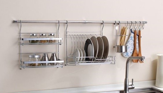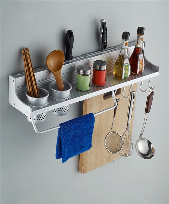 厨房上置物架基本是采用太空铝、不锈钢、碳钢、木质等材料加工而成。