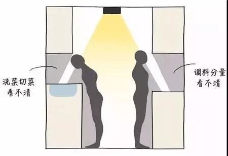 当你切菜煮饭的时候就会发现,你刚好挡住了吸顶灯下的光,面对的地方都是一片阴影。