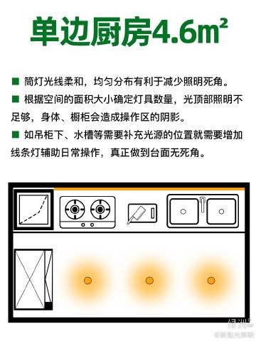 线条灯:安装在吊柜下方辅助照明,不怕做饭时有暗区