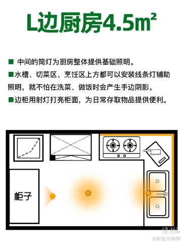 L型厨房4.5㎡:筒灯+射灯+线条灯