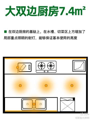 大双边厨房7.4㎡:筒灯+射灯+线条灯