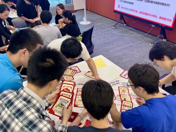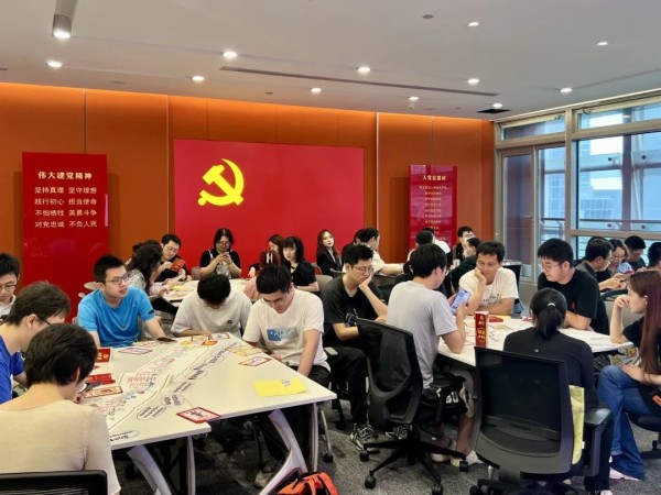 分组围坐,抽取角色牌,进行组别PK……这不是桌游比赛现场,而是在西岸数字谷党群服务中心举行的可视化体验式党课中的一个环节。
