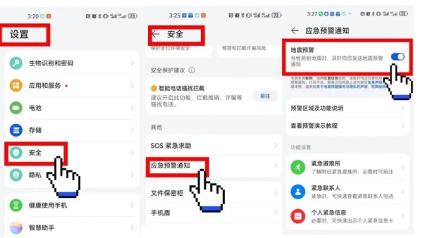 地震预警信息非常重要在紧急时刻提前几秒钟的预警都是紧急避险的宝贵时间各种手机型号的打开方式