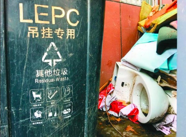 记者随机采访了路过的两位业主,一位业主认为废旧马桶属于生活垃圾中的“其他垃圾”,另一位业主认为旧马桶可能属于建筑垃圾。