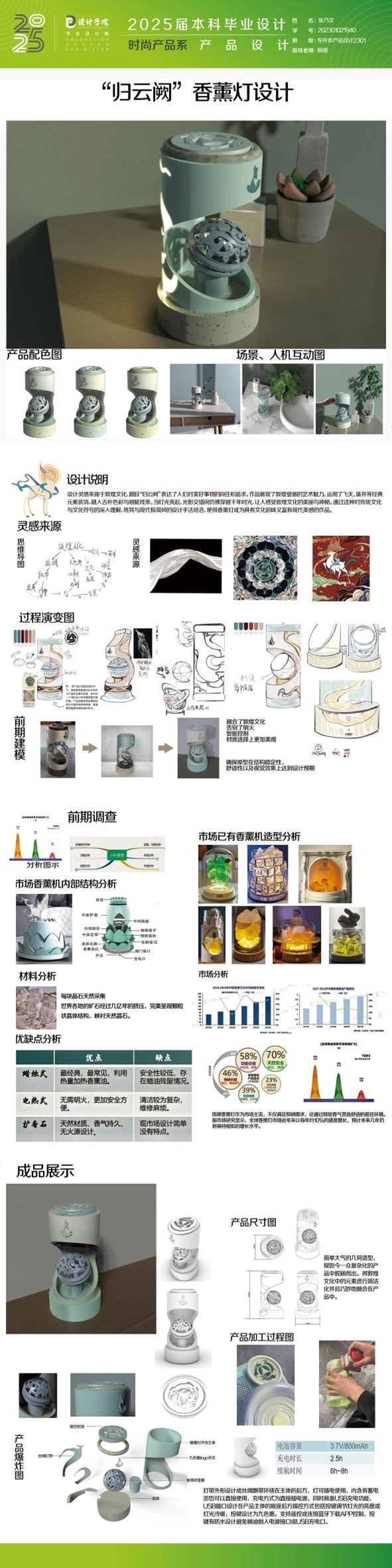 2025届产品设计毕业生,主要围绕“文创产品、家电产品、陶艺产品、家具产品、交通工具”等设计主题,选题涵盖文创产品、传统文化传承与改良、陶瓷灯具设计、家具设计等,毕业设计作品充分展现学生四年的学习成果和教师教学成果。