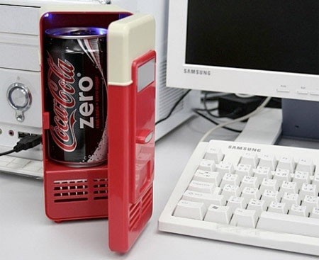 USB迷你小冰箱。USB迷你冰箱,靠USB口供电的冰箱,这个冰箱很小,只能放进一罐饮料,它可以让你在使用电脑的时候顺手能喝到一杯冰镇的可乐。