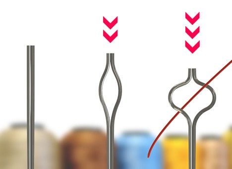 创新的缝纫针。仅需一点压力,大眼针的环眼打开,开展到纽扣那么大,穿针引线,不在话下。这缝纫针的出现实在是妈妈们的福音啊!