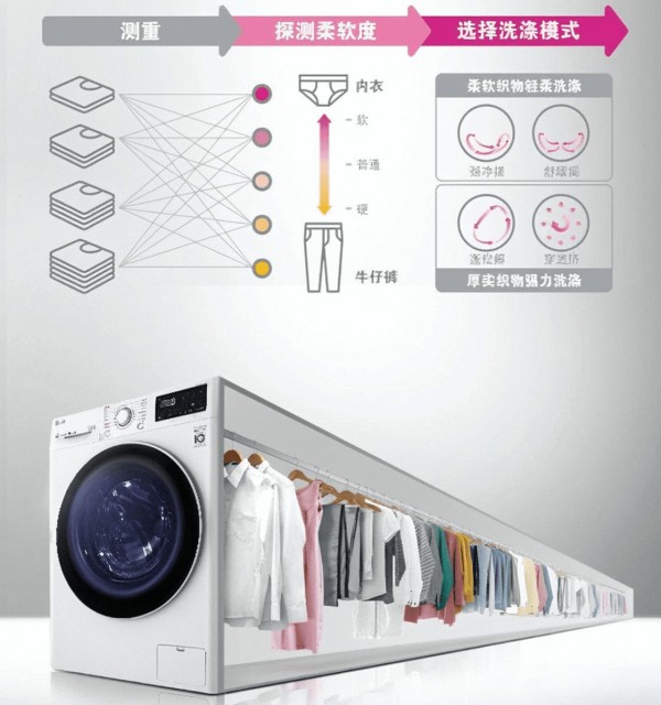 LGAI智慧洗系统:智能优化洗涤流程,结合变频蒸汽技术,确保每件衣物在清洗过程中得到充分保护,提高清洁效果,洗后衣物如新,散发自然清香。