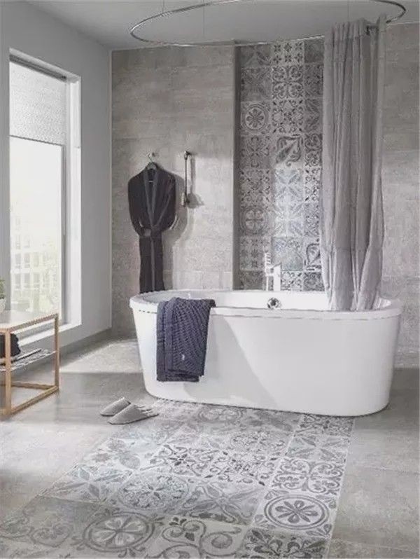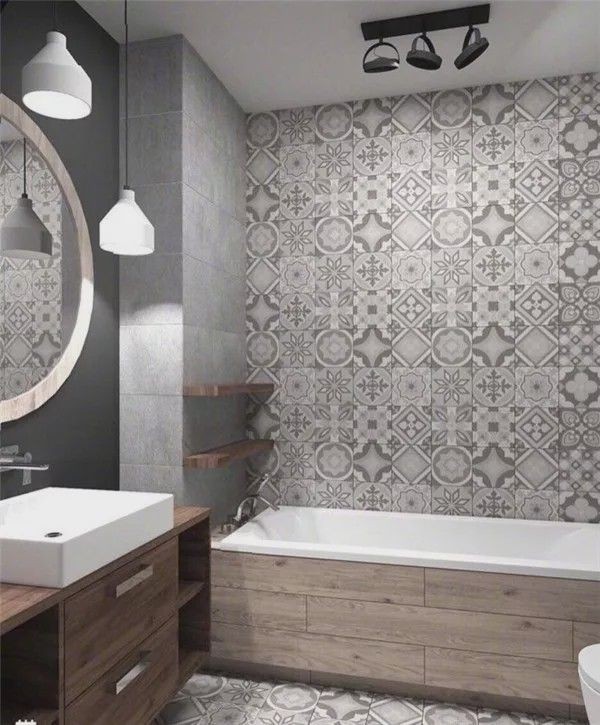 浴室是水汽较多的场所,而精致的花砖越来越受到人们的青睐,特别是在浴室使用,更是别具情趣与韵味。