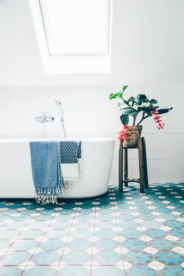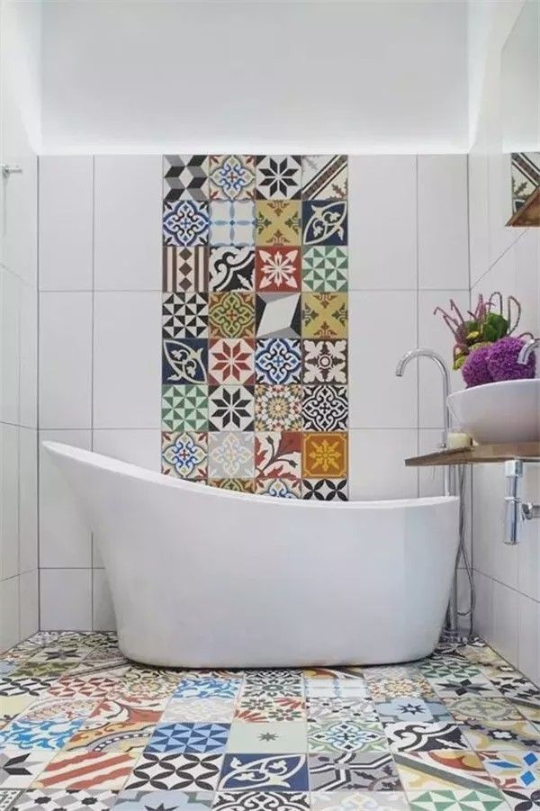 花砖为地面增添变化与律动感,鲜艳的色彩以及温柔的花纹,给单调的浴室增添了几分浪漫。
