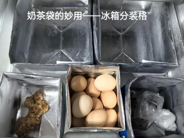 不得不说,现在点外卖送的奶茶袋质量越来越好了,像这种既防水又保温的,千万不要扔,只需要三步,就能摇身变成高颜值冰箱抽屉,收纳力MAX!