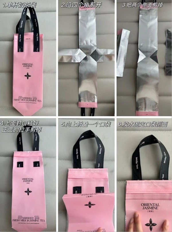 现在的年轻人真的太有才了,这爆改的手提购物袋,谁还看得出来是装奶茶的袋子!大牌包包的即视感有木有!