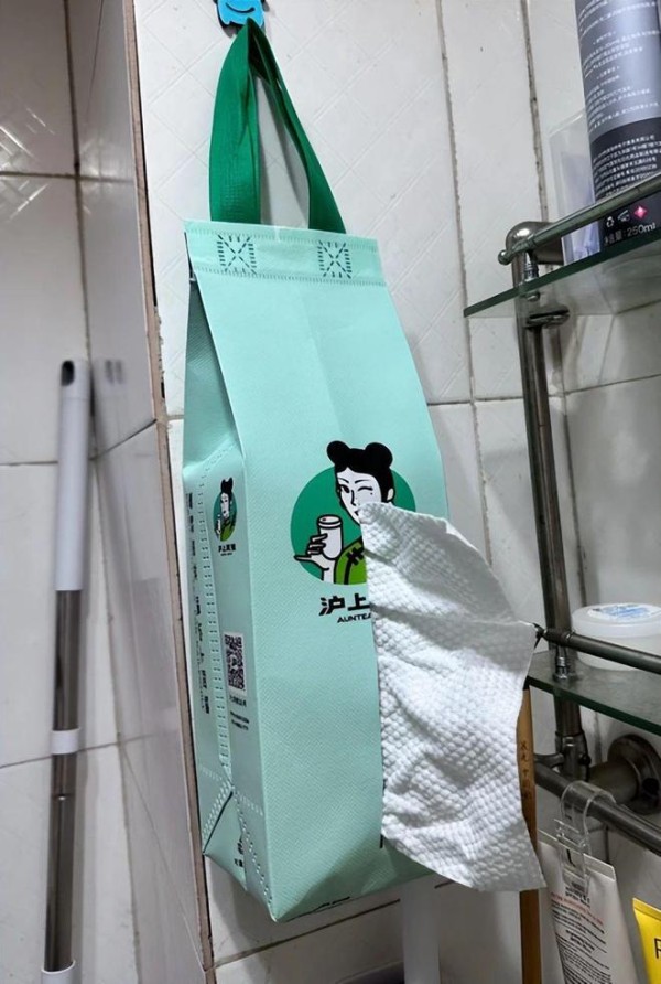 最近搬家,卫生间缺了一个抽纸盒,刚好天热点了杯奶茶,就用奶茶袋改造了一个,简直不要太方便!
