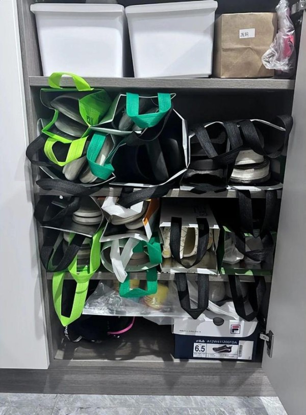 鞋架上的鞋子怕落灰怎么办?根本不需要买什么防尘袋,多攒几个奶茶袋就搞定了!