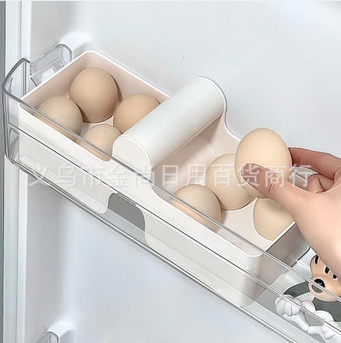 沨漪栎鸡蛋收纳盒冰箱侧门收纳盒滚蛋食品级鸡蛋架自动滚蛋鸡蛋盒保鲜盒 奶油白 4.16元(需买3件,共12.48元)
