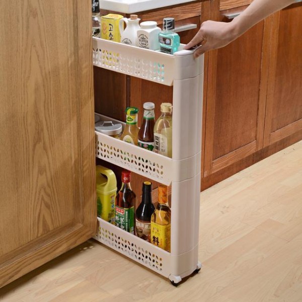 厨房橱柜和冰箱之间总会有些缝隙被浪费了,快来试试这个夹缝置物架,狭小的身材可以利用缝隙储物。下方带滚轮设计,方便移动不用的时候推进去不占地又美观。这个蔬菜框也是很不错的,可以叠加拆卸使用,不管是放在灶台还是地面都不错