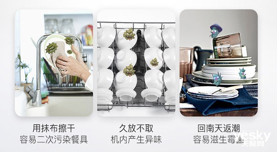 热交换烘干,热交换机就是洗碗机两侧装的冷水管,最后烘干阶段,通过温差使水汽吸附在两侧冷壁上加强烘干效果,可以理解成加强版冷凝烘干。还有就是吸附干燥烘干,类似电吹风用的是加热丝,这种就是在加热丝的上面再放置可逆性沸石用来吸附干燥,相当于先把洗碗机内部空气加热再干燥,然后有鼓风机内部空气循环,达到烘干效果。